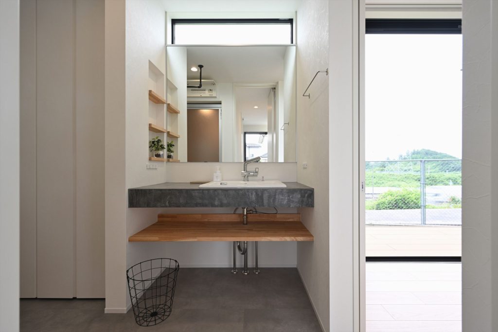 滑らかな仕上がりにより、造作洗面ならではの一体感のあるデザインに仕上がっています。