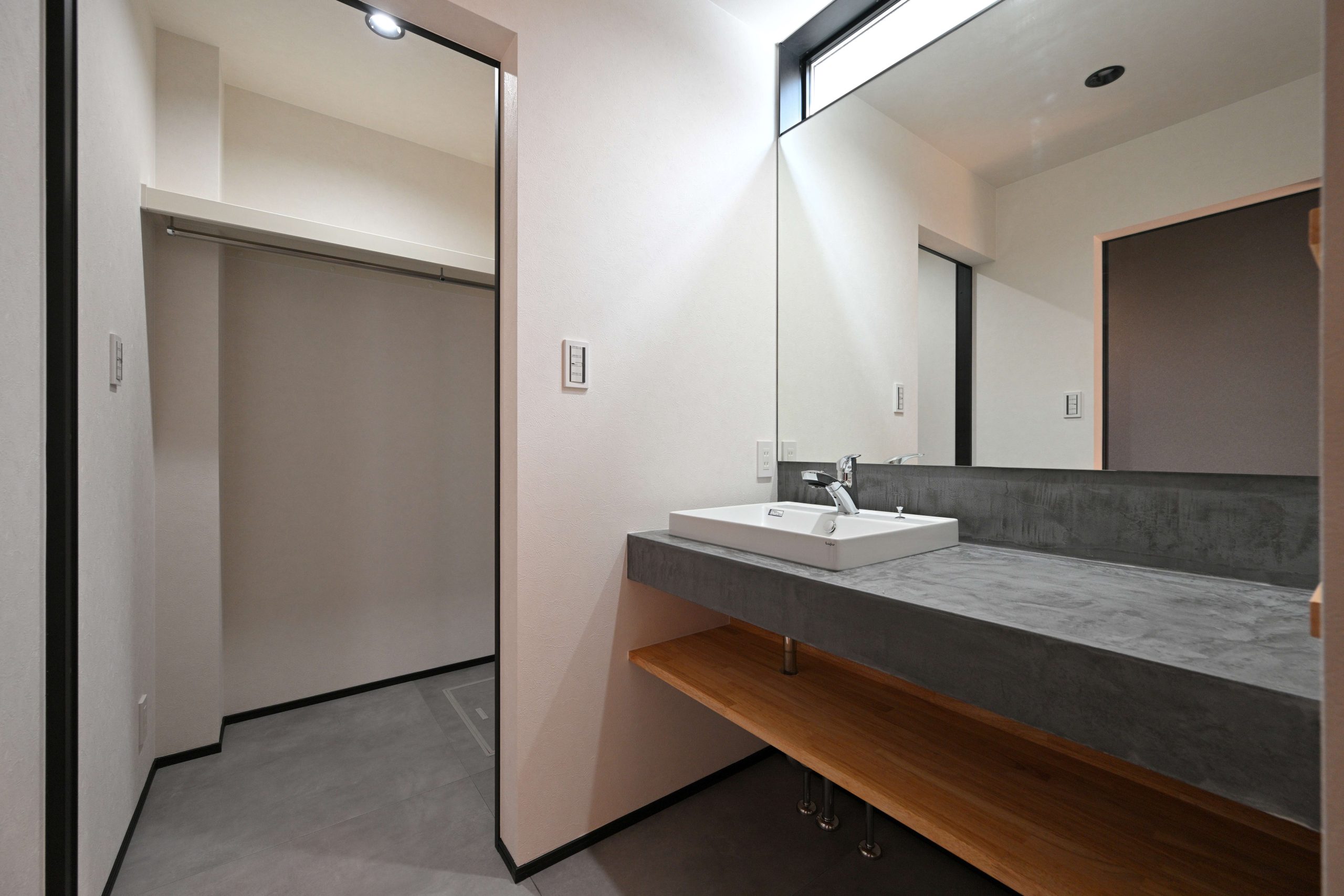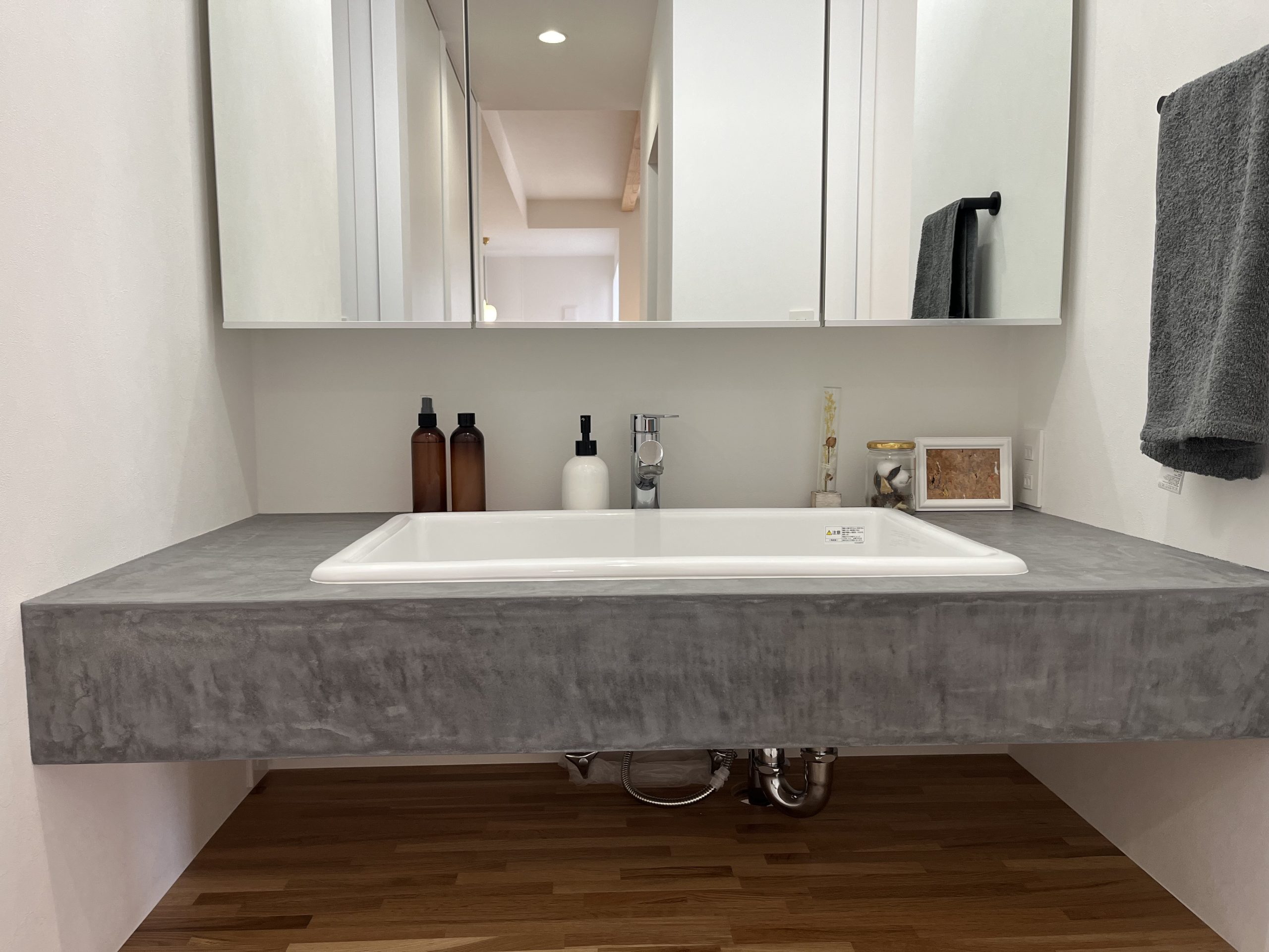 滑らかな仕上がりにより、造作洗面ならではの一体感のあるデザインに仕上がっています。
