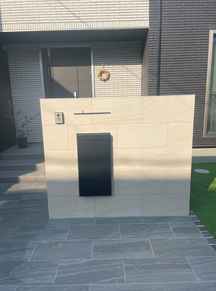 玄関脇のさりげない植栽が和みます。花壇はブロックで囲んでます。かわいい!