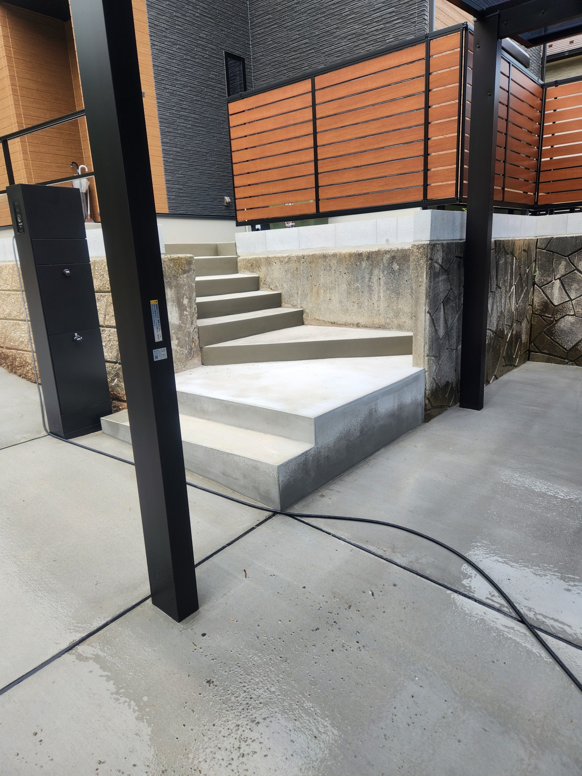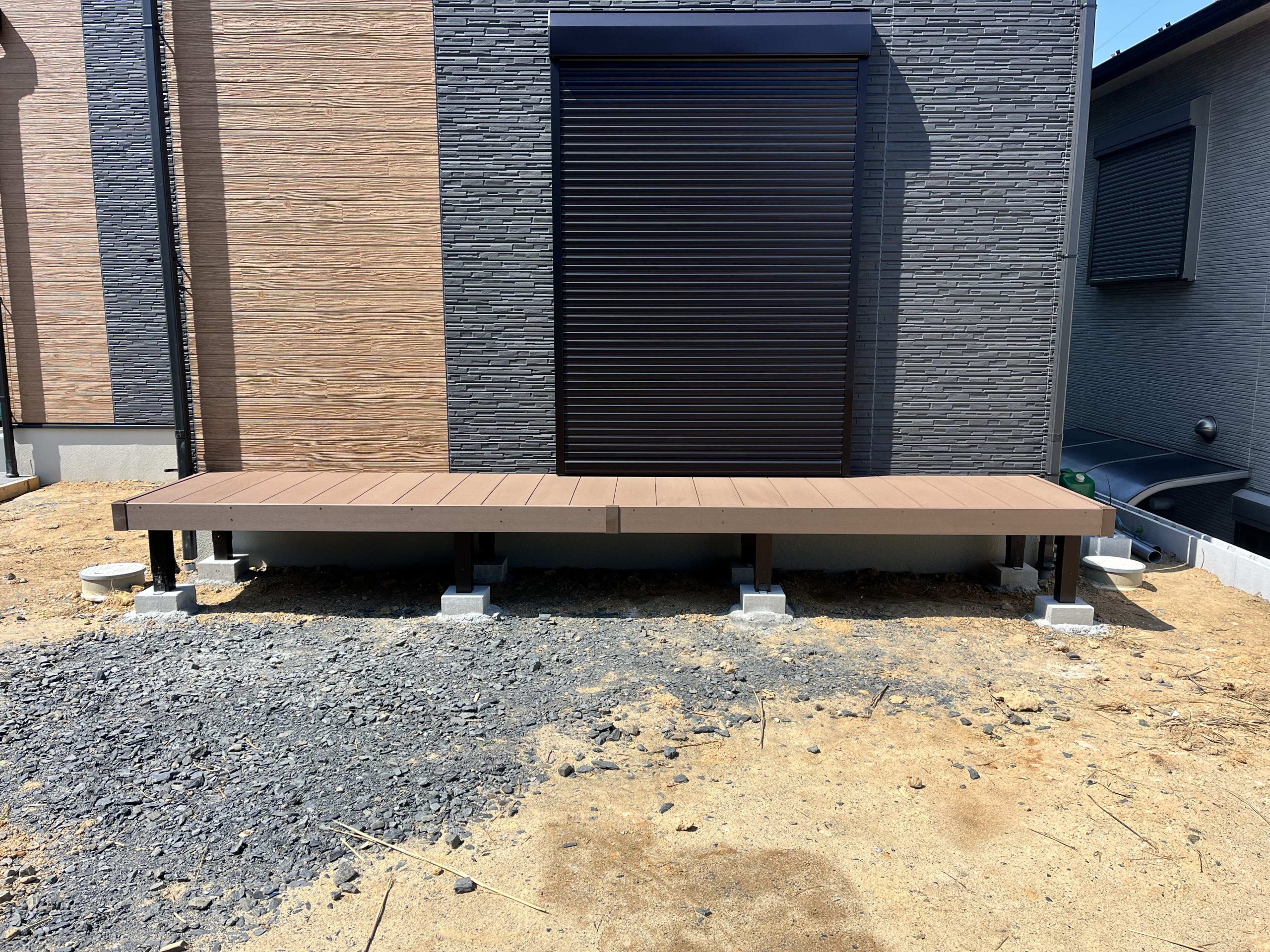 経年劣化した既存階段は滑りやすくなっていたので、モルタル補修をしました。 お庭にはリウッドデッキを施工させていただきました。ベンチとしてお庭を眺める憩いの場となりました。