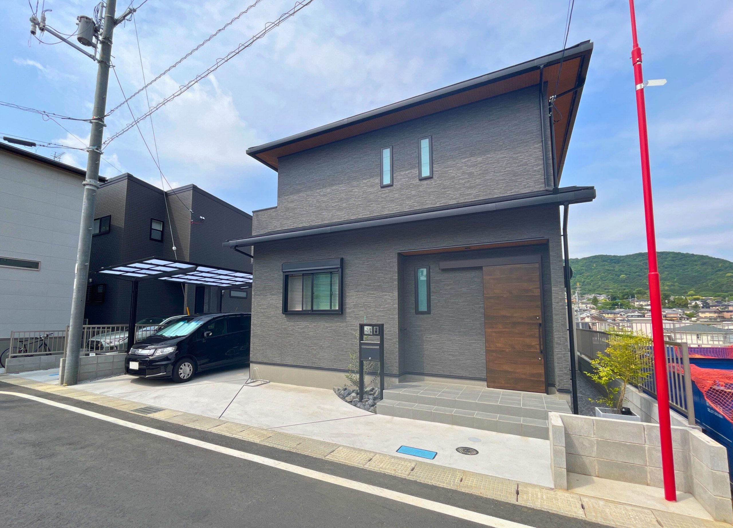 スリットが入ったアプローチは水はけも良く、スタイリッシュな外構になります。