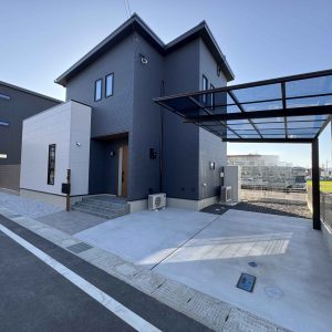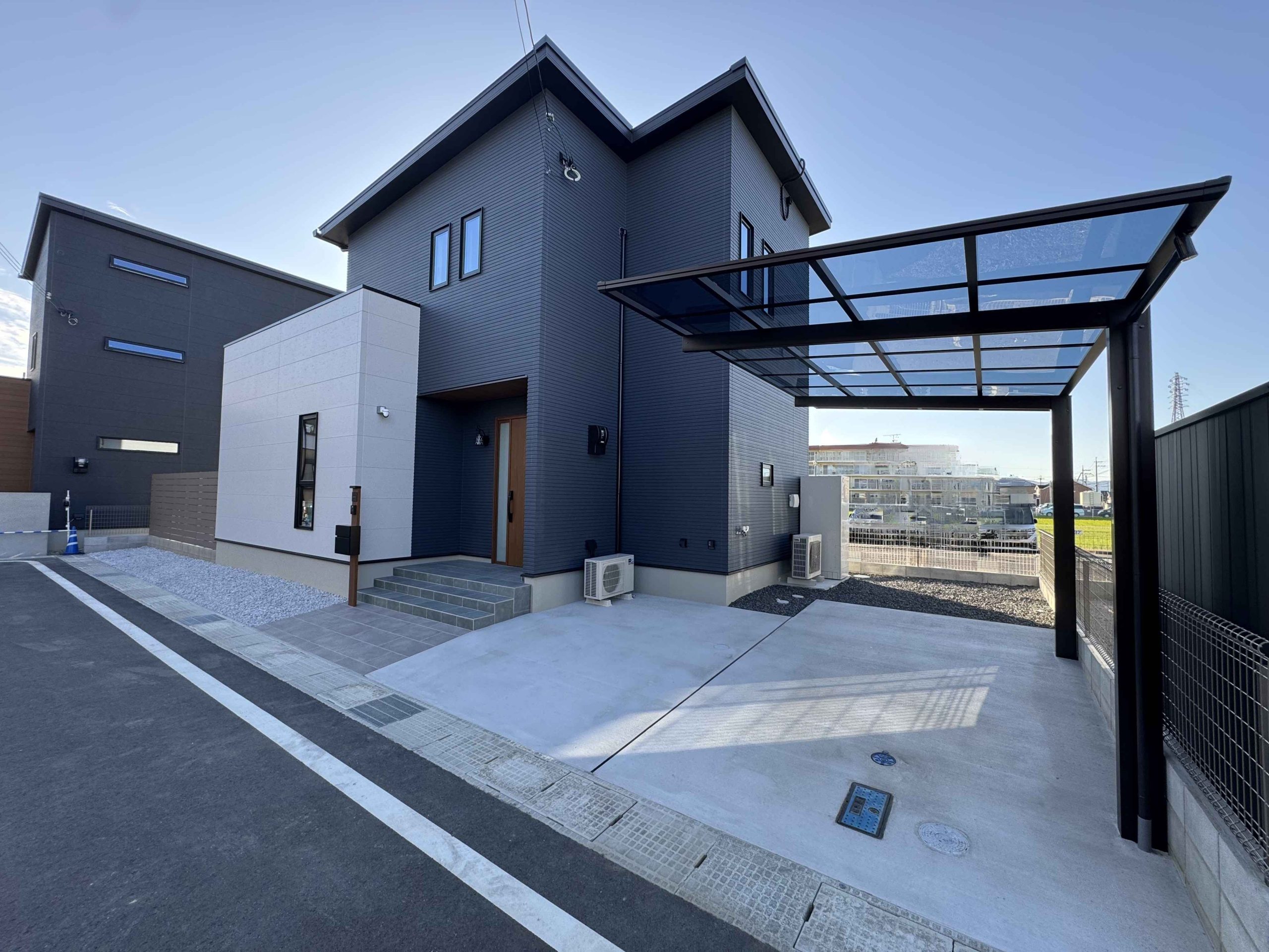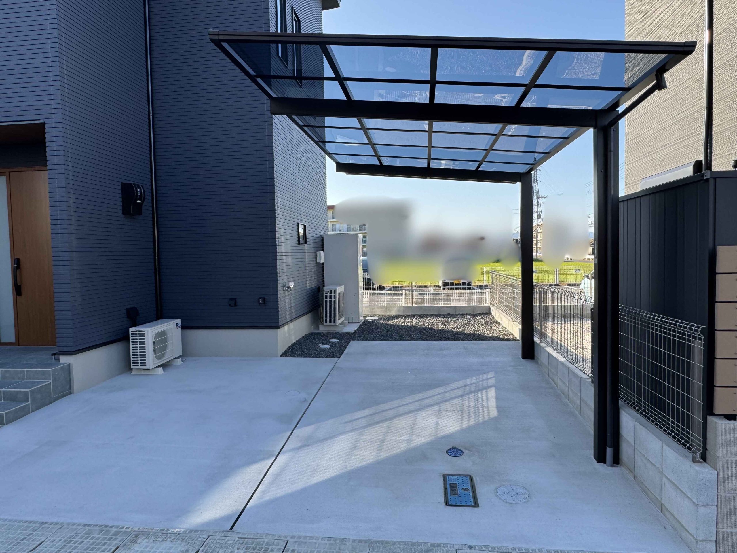 ゆとりある駐車スペースとカーポートを設置しました。シャープでシンプルなデザインが住まいにフィットしています。